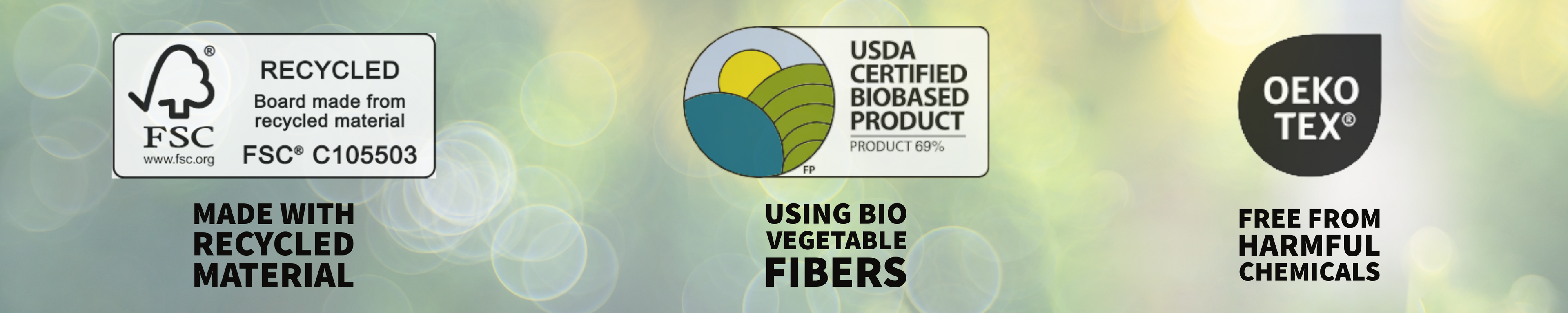 WE USE ONLY SUSTAINABLE BIO BASED MATERIALS